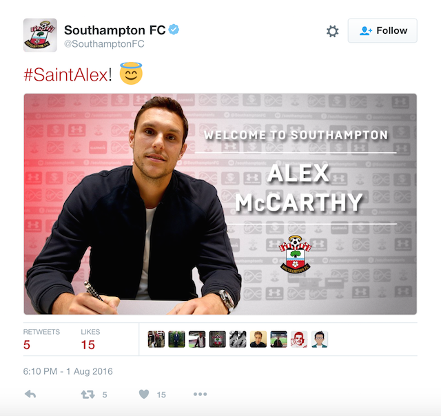 McCarthy also started following Southampton FC on Twitter on Monday and then was announced a few hours later. Modern football transfers, eh?